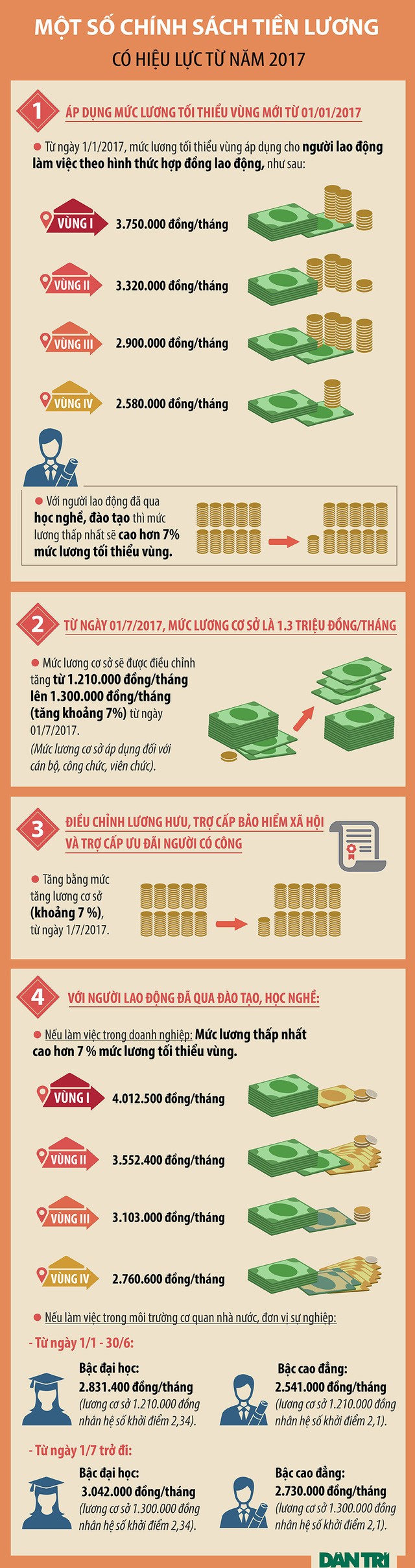 [Infographics] Năm 2017: 4 chính sách tiền lương sẽ có hiệu lực