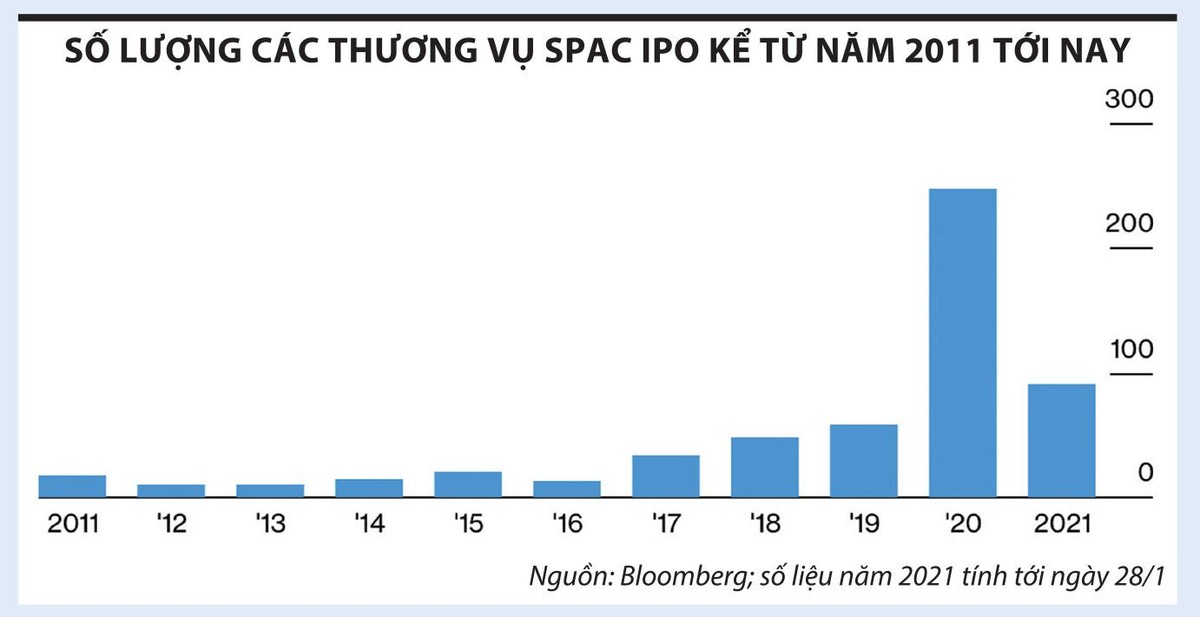 Bước sang năm 2021, theo SPACInsider, chỉ tính đến giữa tháng 2 đã có 160 SPAC IPO, huy động tổng cộng hơn 48 tỷ USD, tương đương hơn một nửa tổng số tiền huy động được trong năm 2020 và bằng với số tiền huy động được giai đoạn 2009 - 2019.