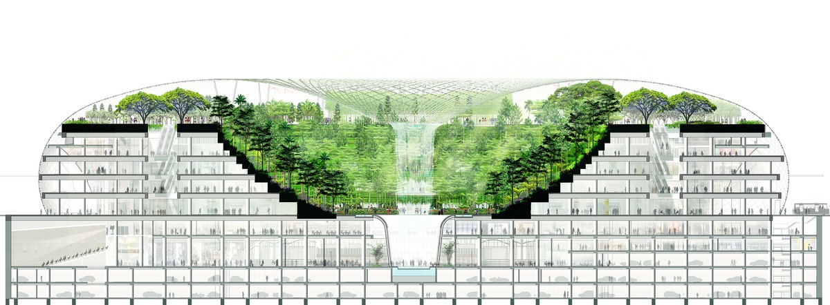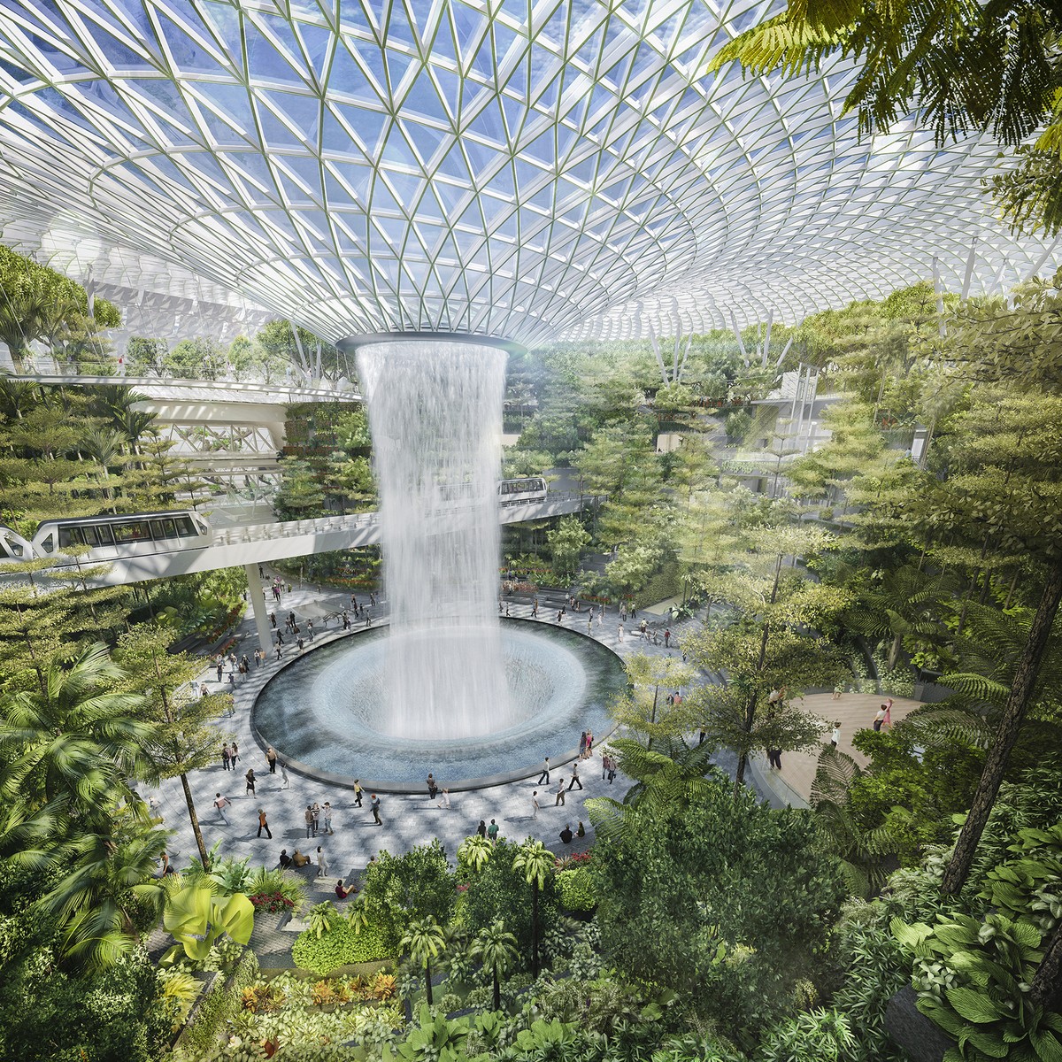 Khu vực thương mại và khu vườn nhân tạo rộng lớn, mà còn trở thành trái tim, linh hồn của Sân bay, tạo nên một trung tâm mang tính biểu tượng cao.