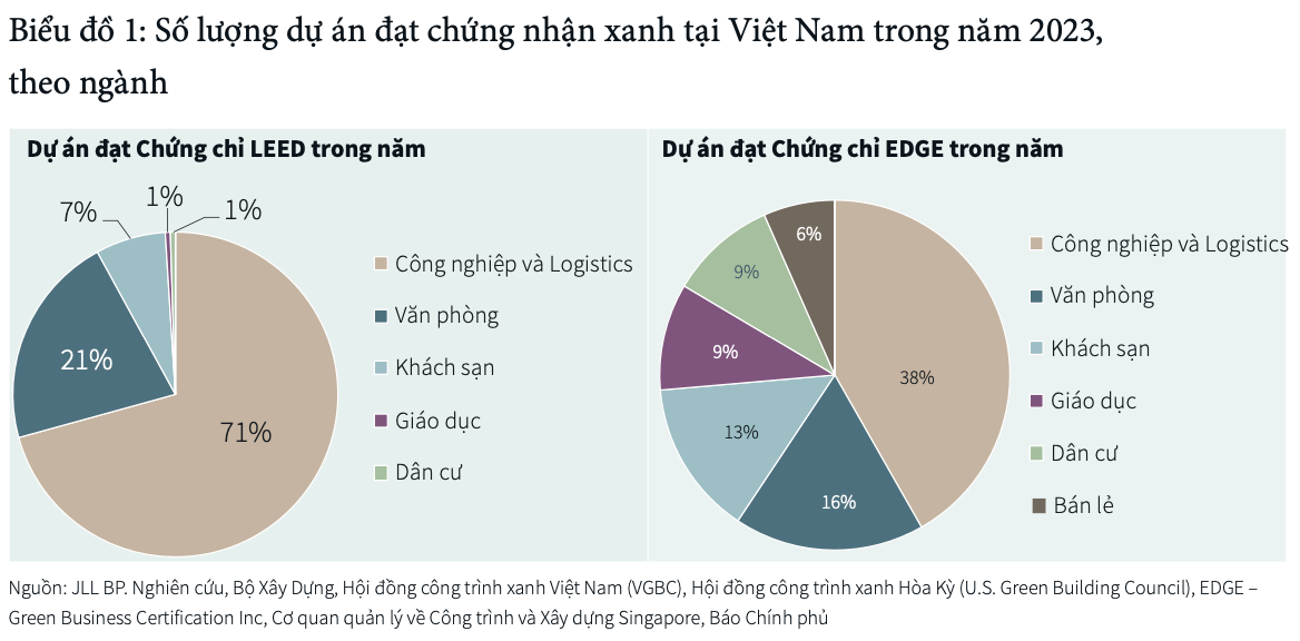 Trong tiến trình xanh hoá, thị trường công nghiệp đang dẫn đầu trong việc đạt được các chứng nhận công trình xanh trong mọi khâu từ phát triển bất động sản đến vận hành và sản xuất.