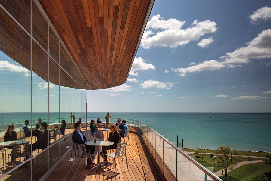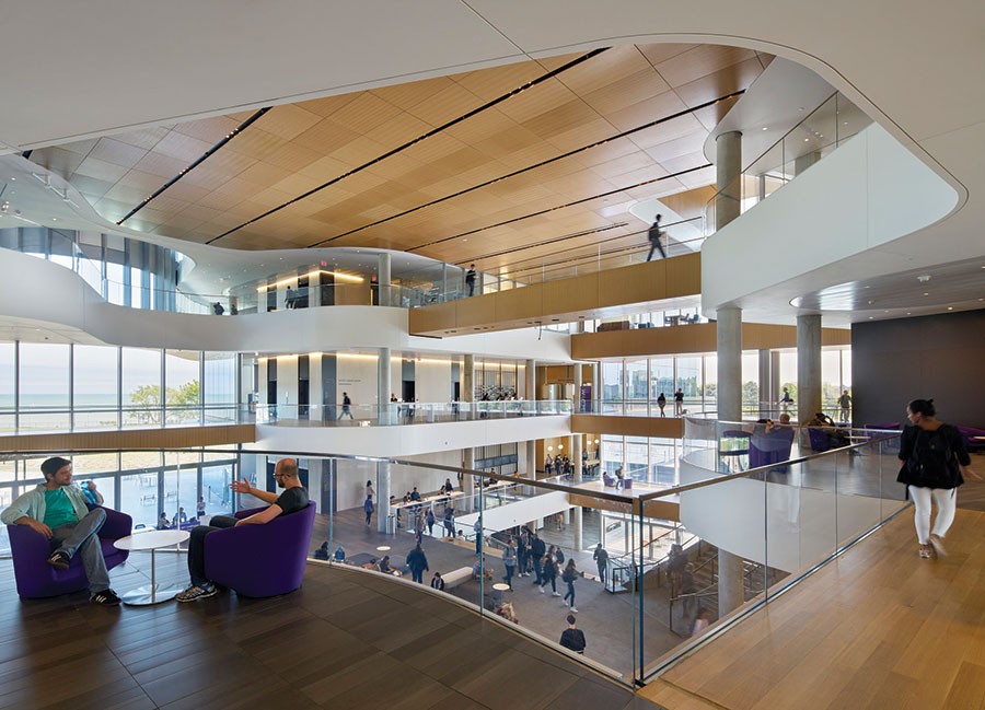 Kellogg School bao gồm nhiều tòa nhà khác nhau, phục vụ nhiều mục đích như học tập, nghiên cứu, tụ tập. Trong đó, tòa nhà rộng lớn 5 tầng theo tiêu chuẩn LEED Platium được thiết kế để tạo nên các không gian thư giãn, phù hợp với các mục đích học tập và thảo luận tại mỗi tầng với quy mô khác biệt, từ nhóm 2 người tới 20, 200, 2.000 người.