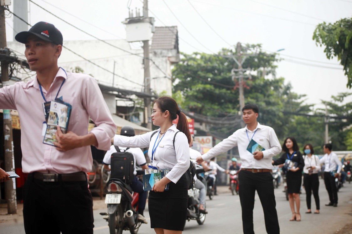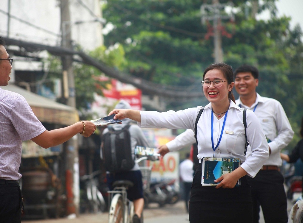 (ĐTCK) Đối với các dự án Bất động sản bậc trung đang phát triển tại các quận vùng ven của TP.HCM như Tân Phú, Tân Bình, Bình Chánh, Bình Thạnh,...thì kênh tiếp thị hiệu quả và giảm chi phí chính là lực lượng bán hàng. Hình ảnh các cô gái, chàng trai lịch sự và xinh đẹp với kiến thức được trang bị đầy đủ về dự án luôn nở nụ cười sẽ làm khách hàng tin tưởng khi được tư vấn.