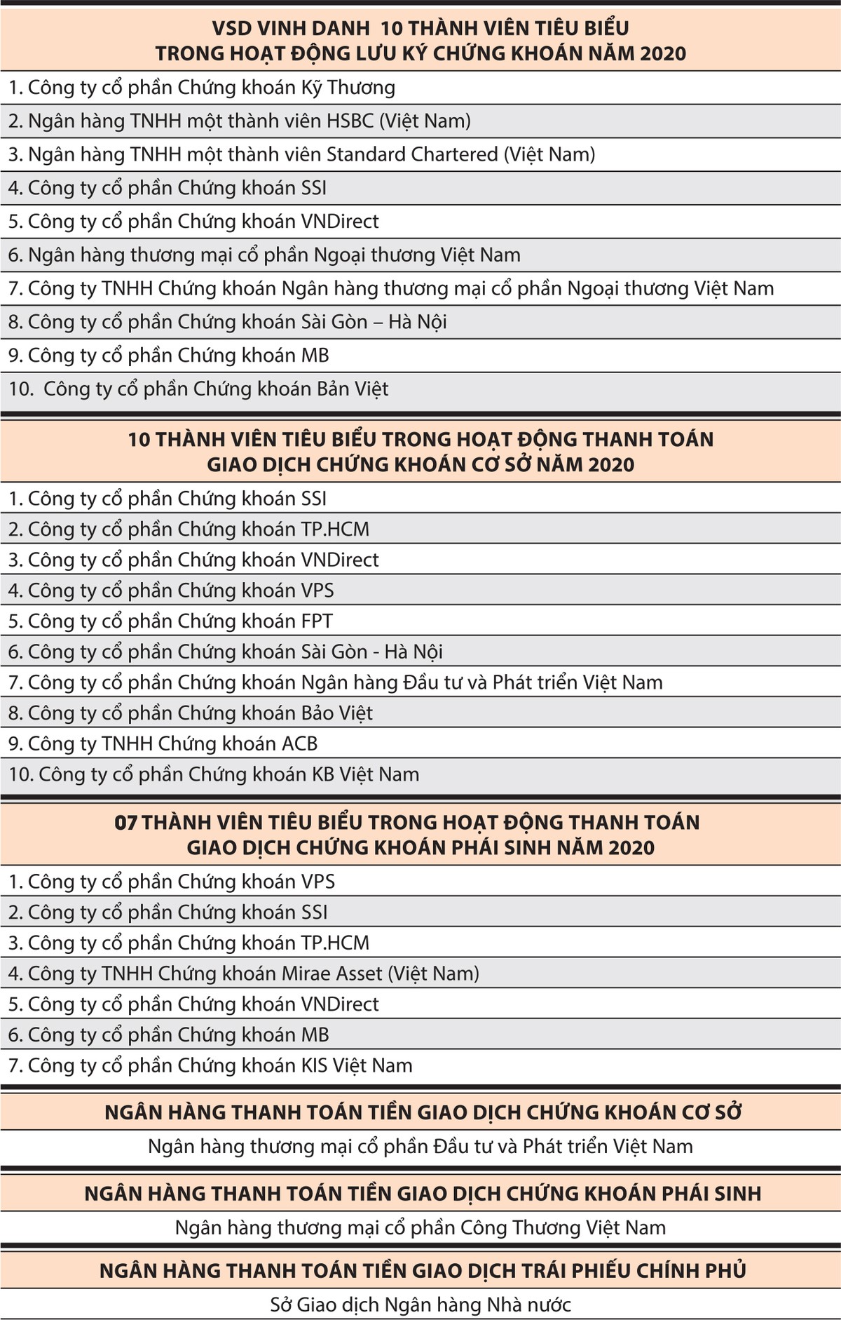 Dù ảnh hưởng của dịch bệnh Covid-19, nền kinh tế gặp nhiều khó khăn nhưng thị trường chứng khoán Việt Nam vẫn đạt được tốc độ tăng trưởng đáng ghi nhận. Tổng số tài khoản người đầu tư được quản lý thông tin đến ngày 31/10/2020 đạt gần 2,7 triệu tài khoản, tăng hơn 12% so với thời điểm cuối năm 2019. Trong đó, số tài khoản tham gia giao dịch chứng khoán phái sinh là 152.438, tăng hơn 67% so với ngày 31/12/2019. VSD đã thực hiện thanh toán hơn 3.368.754 tỷ đồng chứng khoán cơ sở và hơn 3.800 tỷ đồng chứng khoán phái sinh