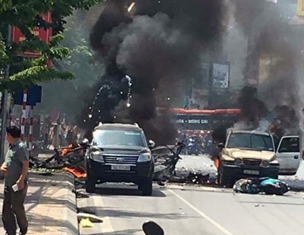 Ngoài ra, xe ô tô BKS 14D-003.81 do anh Nguyễn Hữu Phúc - sinh năm 1975, trú tại phường Cẩm Thạch, thành phố Cẩm Phả, tỉnh Quảng Ninh điều khiển đang đi gần xe taxi cũng bị bắt lửa gây cháy. Anh Phúc đã mở cửa thoát ra ngoài an toàn.