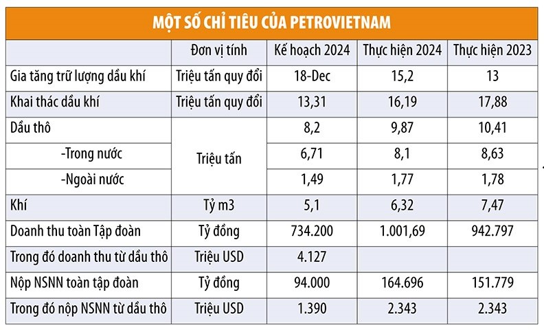 Năm 2024, gia tăng trữ lượng dầu khí của Petrovietnam đã đạt 15,2 triệu tấn quy dầu, vượt 26,7% kế hoạch đề ra và tăng so với mức 13 triệu tấn quy dầu của năm 2023.