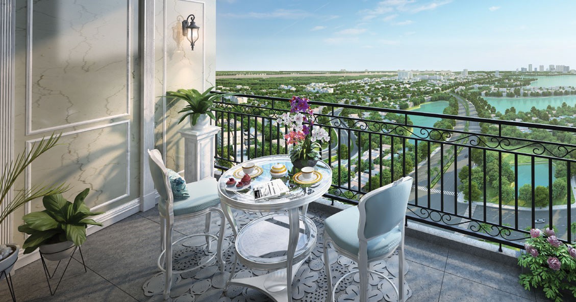 Không gian thoáng rộng, xanh mát từ góc nhìn tại các ban công của căn hộ D'. Le Roi Soleil.