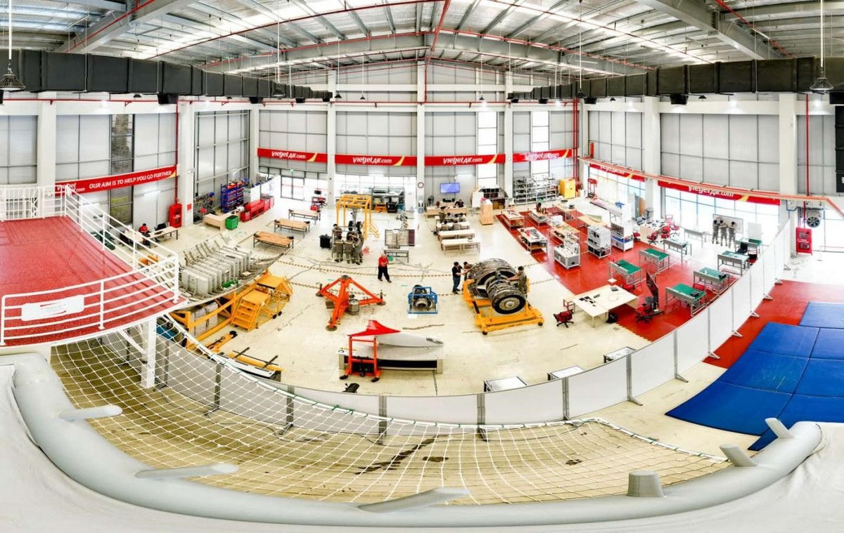 Tại Học viện Hàng không Vietjet, một trung tâm đào tạo kỹ thuật cũng đang hoạt động với các trang thiết bị, động cơ hiện đại.