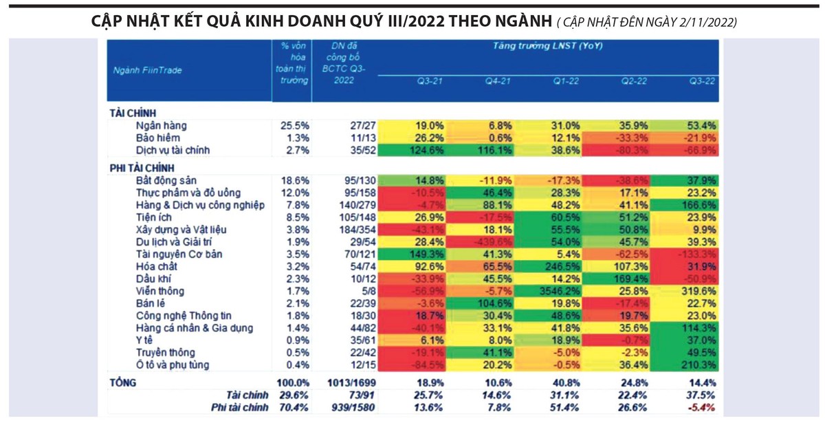 Cập nhật kết quả kinh doanh theo ngành của FiinGroup cho thấy, phần lớn doanh nghiệp địa ốc vẫn tăng trưởng dương trong quý III/2022, nhưng đa phần không tới từ hoạt động kinh doanh chính và so với mức nền thấp ở cùng kỳ năm trước - giai đoạn dịch Covid-19 bùng phát mạnh.