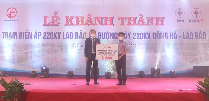Cũng tại buổi lễ, thay mặt EVN, ông Trần Đình Nhân, Tổng giám đốc EVN đã trao 1 tỷ đồng ủng hộ tỉnh Quảng trị trong việc phòng chống dịch COVID-19.