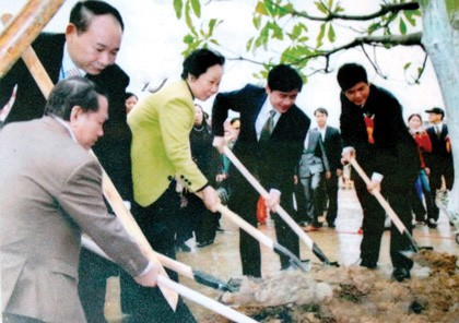 Phó chủ tịch nước Nguyễn Thị Doan cùng lãnh đạo tỉnh Thái Bình, huyện Quỳnh Phụ trồng cây tại Đền A Sào