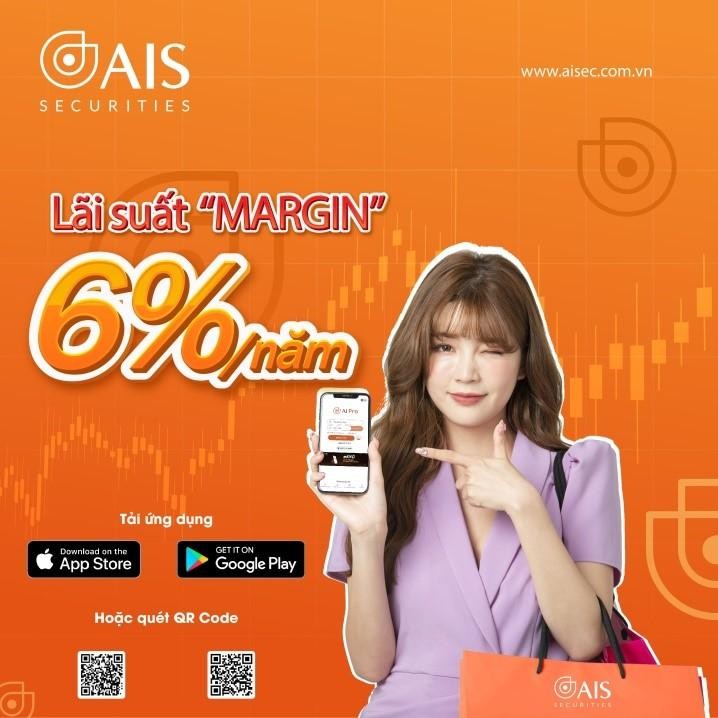 Ngoài ra AIS còn áp dụng mức lãi suất cho vay margin chỉ từ 6%/năm đối với các khách hàng giao dịch cổ phiếu.