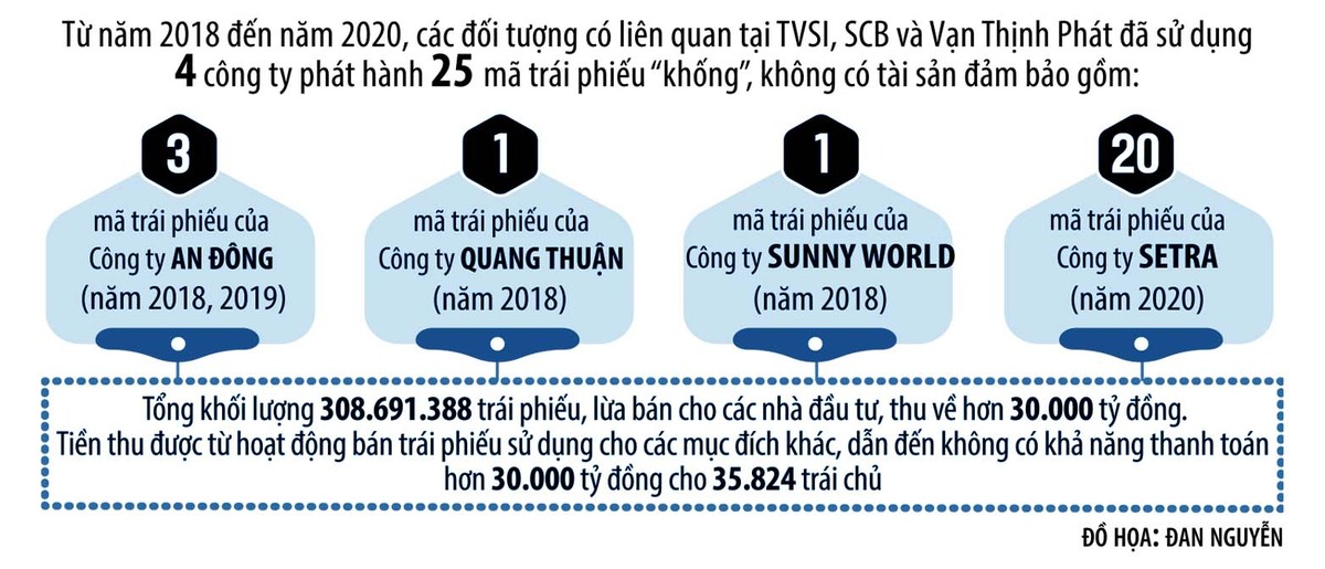 Từ năm 2018 đến năm 2020, dưới sự chỉ đạo của ông Nguyễn Tiến Thành, TVSI đã “nỗ lực” cung cấp dịch vụ tư vấn, phát hành thành công 25 gói trái phiếu không có tài sản đảm bảo cho 4 công ty “chân tay” của Vạn Thịnh Phát là An Đông, Sunny World, Quang Thuận và Setra.
