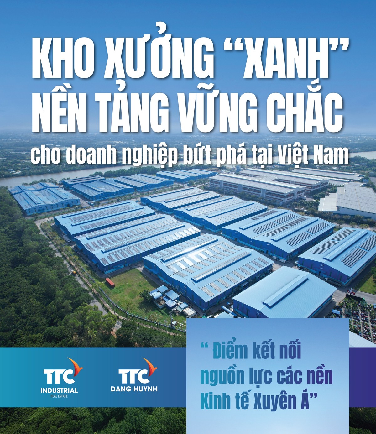 Kế thừa kinh nghiệm và tiềm lực vững chắc từ Tổng công ty Bất động sản công nghiệp Thành Thành Công - một trong những nhà phát triển hàng đầu trong lĩnh vực bất động sản công nghiệp tại Việt Nam, TTC Đặng Huỳnh giữ vai trò then chốt trong việc hiện thực hóa tầm nhìn phát triển bền vững. Công ty tiên phong tuân thủ các tiêu chuẩn thân thiện với môi trường nghiêm ngặt trong chiến lược mở rộng khu công nghiệp, cụm công nghiệp hiện đại, nhằm giảm thiểu tác động đến môi trường, đặc biệt là đối với hệ thống kho xưởng.