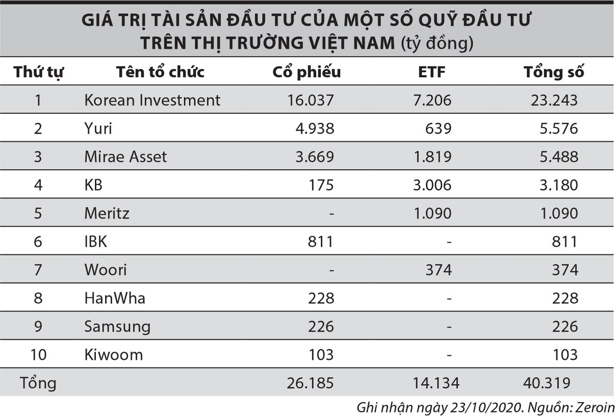 Lâu nay, dòng vốn Hàn Quốc đầu tư gián tiếp vào Việt Nam chủ yếu thông qua các quỹ đầu tư, quỹ ETF (dẫn vốn từ các nhà đầu tư cá nhân tại Hàn Quốc).
