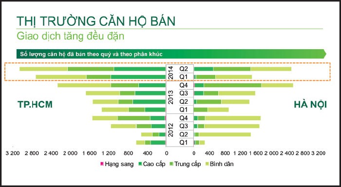 Nhưng ông Đoàn Văn Bình chưa thể lạc quan về thị trường căn hộ cao cấp ở Hà Nội, bởi mặc dù thanh khoản đã tốt hơn, nhưng đó mới chỉ là những diễn biến bề nổi, còn trên thực tế, hàng tồn kho còn nhiều và các doanh nghiệp đầu tư vào phân khúc này vẫn gặp khó khăn.