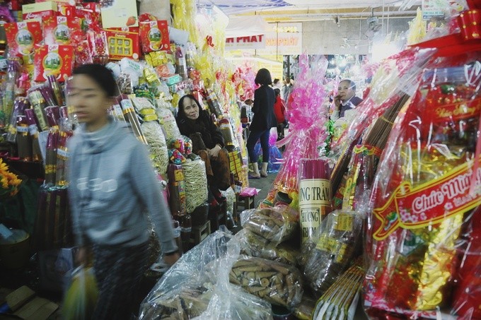 Gian hàng đồ mã kín cả lối vào, mệ bán hàng thâm niên hơn 50 năm tại chợ nở nụ cười "rất Tết".