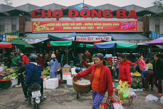 Chợ Đông Ba - được hình thành từ năm 1899 dưới thời vua Thành Thái - là một trong những biểu tượng của vùng đất Cố đô, vốn quanh năm tấp nập và nhộn nhịp nay lại càng đông hơn, hối hả hơn vào những ngày giáp Tết.
