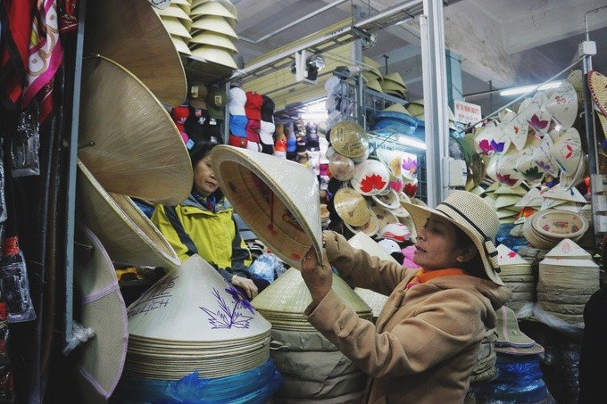 Một số cô bác tranh thủ ghé lại hàng nón lá sắm chiếc nón mới ngày cuối năm.