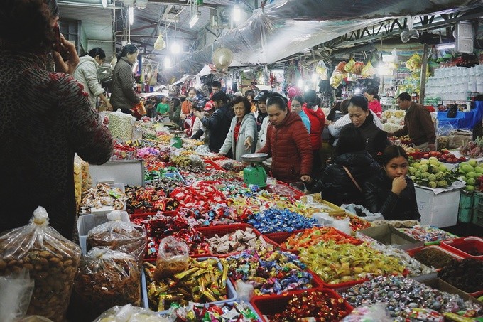 Những gian hàng bánh mứt dịp Tết luôn thu hút lượng lớn người mua.