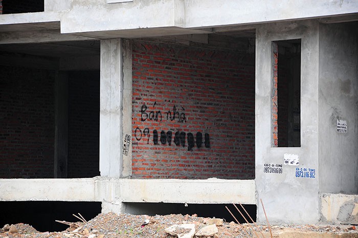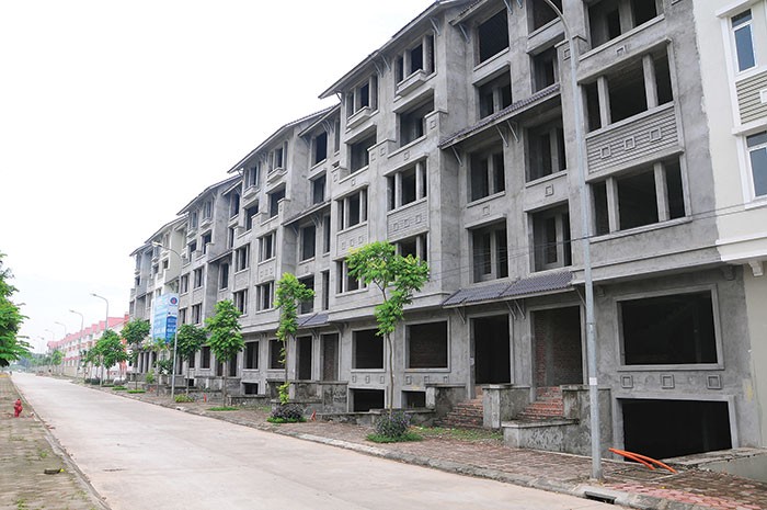 Dãy biệt thự liền kề đã tương đối hoàn thiện, nhưng chưa có người đến ở