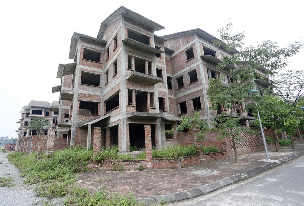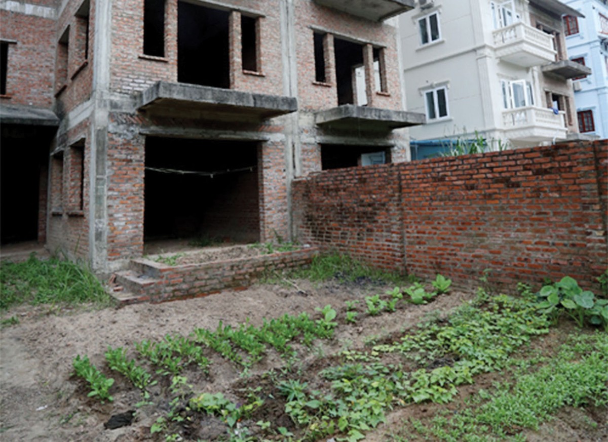 Những ngôi nhà xây thô xong bỏ hoang nhiều năm cỏ cây mọc đầy trong sân