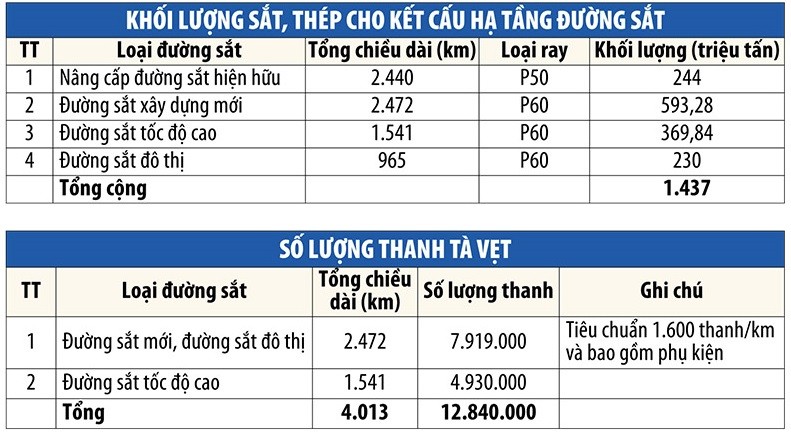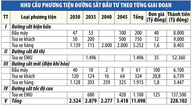 Theo tính toán, đến năm 2050, định hướng các hoạt động cải tạo, nâng cấp, xây dựng đường sắt, bao gồm cả đường sắt đô thị, đường sắt tốc độ cao, ước đạt tổng giá trị khoảng 275 tỷ USD.