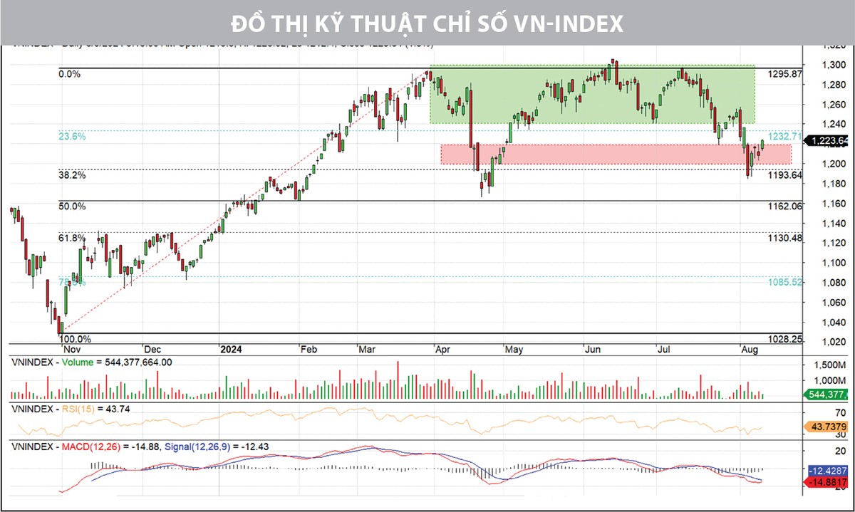 Thị trường chứng khoán Việt Nam khép lại một tuần giao dịch đầy biến động theo xu hướng chung của thị trường chứng khoán toàn cầu. Dù hồi phục tích cực trong phiên cuối tuần, nhưng tính chung, VN-Index ghi nhận giảm 12,96 điểm (1,06%), đóng cửa tại 1.223,64 điểm.