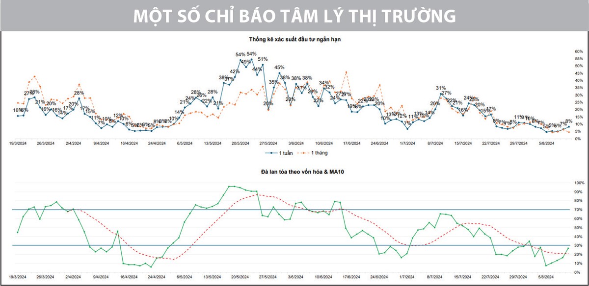 Thanh khoản thấp thể hiện lực cầu chưa hoàn toàn tự tin và đủ thuyết phục, nhưng điểm sáng được thể hiện trên chỉ báo tâm lý thị trường là đà lan tỏa đã có xu hướng cắt lên MA10, đồng thời MA10 giảm độ dốc và dần đi ngang. Điều này cho thấy, dù chưa khẳng định VN-Index đảo chiều tạo đáy, nhưng mở ra kỳ vọng vùng đáy sẽ sớm xuất hiện.