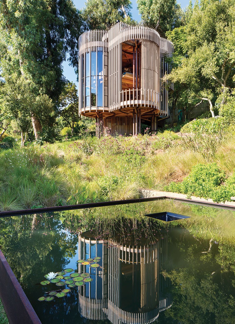 Kiến trúc này được đặt trong một diện tích khá hẹp, bao bọc xung quanh là cây cối như một khu vườn rậm rạp. Cũng chính bởi vậy, ngôi nhà phải mang dáng hình thẳng đứng, mô phỏng như những thân cây xung quanh, đồng thời tối đa hóa được tầm nhìn từ vị trí cao nhất.