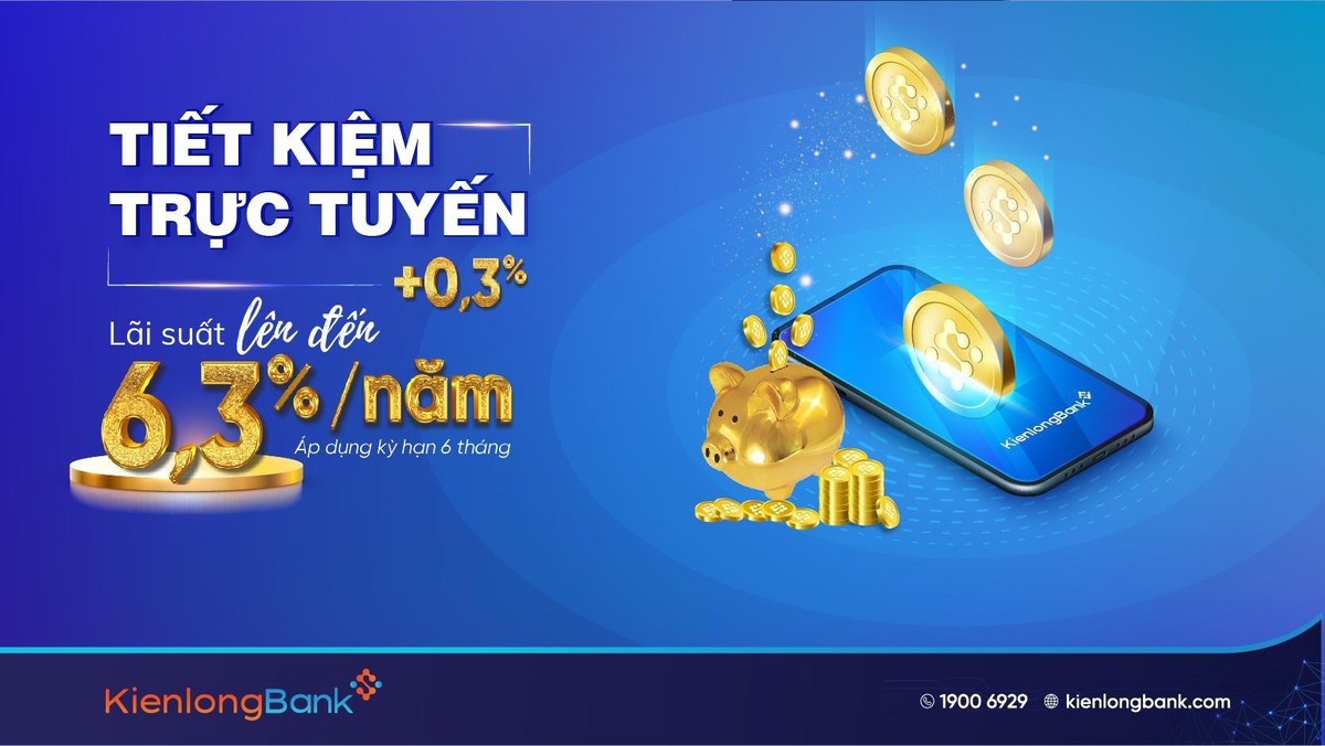 Như vậy, ở các kỳ hạn này, lãi suất tiền gửi trực tuyến của KienlongBank dao động từ 5,9 - 6,3%/năm.