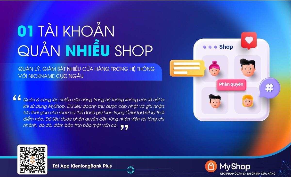 Sớm nhìn nhận ra các vấn đề này, KienlongBank triển khai và tích hợp bộ giải pháp Quản lý tài chính cửa hàng - MyShop trên ứng dụng KienlongBank Plus. Đây sẽ là lời giải giúp các cửa hàng có thể dễ dàng ghi nhận doanh thu, quản lý tài chính, theo dõi dòng tiền đồng thời gia tăng trải nghiệm cho khách hàng. Trong bộ giải pháp đó, các kênh TTKDTM vẫn sẽ đóng vai trò xuyên suốt nhưng đổi lại được tối ưu hơn để phát huy hết tác dụng vốn có của nó.