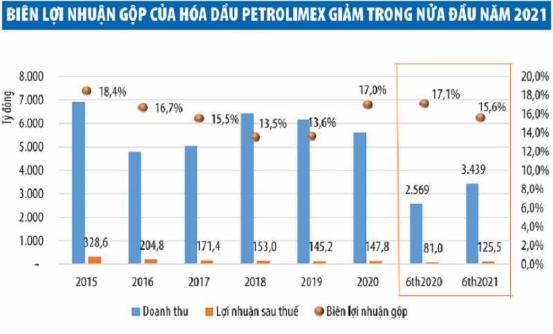 Tuy vậy, biên lãi gộp của cả 2 mảng kinh doanh này lại sụt giảm đáng kể trong bối cảnh giá dầu tăng mạnh, giá bán đầu ra dù cũng có xu hướng tăng, nhưng không đủ bù đắp mức tăng của giá nguyên vật liệu. Biên lợi nhuận gộp của mảng dầu nhờn đã giảm còn 28,62%, từ mức 32,89% trong nửa đầu năm 2020. Biên lợi nhuận gộp mảng hóa chất giảm còn 5,51%, từ mức 9,38% cùng kỳ năm ngoái.