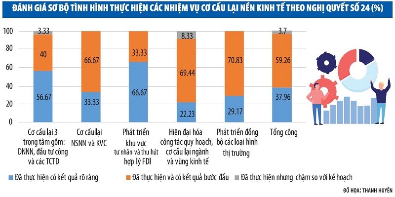 Kết quả khái quát sau 5 năm, nhiều con số và chuyển biến tích cực được thống kê, song chốt lại thì “không được thành công như mong đợi”, như chính đánh giá tại báo cáo của Chính phủ. Theo đó, việc không hoàn thành mục tiêu cơ cấu lại 3 lĩnh vực trọng tâm (đầu tư công, doanh nghiệp nhà nước và các tổ chức tín dụng) không những làm giảm thành quả của quá trình cơ cấu lại nền kinh tế, mà còn trở nên khó khăn hơn trong quá trình tiếp tục triển khai thực hiện, đặc biệt trong bối cảnh tác động tiêu cực của đại dịch Covid-19.
