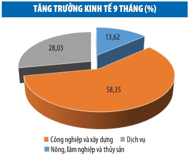 Số liệu thống kê cho thấy, trong mức tăng chung của toàn nền kinh tế, khu vực nông, lâm nghiệp và thủy sản tăng 1,84%, đóng góp 13,62% vào mức tăng trưởng chung; khu vực công nghiệp và xây dựng tăng 3,08%, đóng góp 58,35% ; khu vực dịch vụ tăng 1,37%, đóng góp 28,03%.