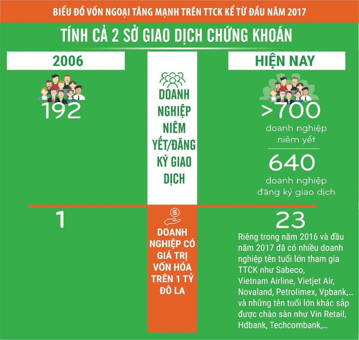 Như tôi đã nói, TTCK đang thu hút dòng vốn đầu tư gián tiếp nước ngoài khá tích cực, trong đó có yếu tố từ kinh tế Việt Nam năm nay diễn biến khả quan. Một số DN niêm yết cũng đã nới room (tỷ lệ sở hữu tối đa cho nhà đầu tư nước ngoài) lên mức 100%, tạo thuận lợi cho khối ngoại gia tăng đầu tư chứng khoán.