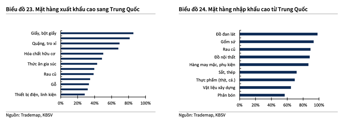 Trong năm 2022, Trung Quốc tiếp tục là đối tác thương mại lớn nhất và là thị trường xuất khẩu lớn thứ hai của Việt Nam, trong khi Việt Nam tiếp tục là đối tác thương mại lớn nhất của Trung Quốc trong khu vực ASEAN. Nhu cầu yếu sẽ làm ảnh hưởng tới các ngành nghề có tỷ lệ xuất khẩu cao sang Trung Quốc như gỗ, giấy, rau củ...