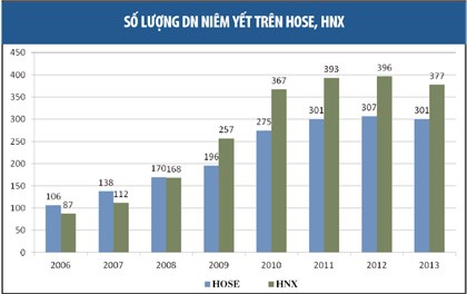 Một trong những lợi ích thiết thực với DN khi tính việc lên sàn là khả năng huy động vốn. Về phần này, 3 năm qua, TTCK Việt Nam liên tục lập kỷ lục về lượng vốn huy động được, nhưng tỷ trọng nghiêng nhiều vào trái phiếu chính phủ (khoảng 90%), phần vốn DN huy động qua TTCK còn nhỏ. Tuy nhiên, số vốn mà DN huy động được qua TTCK đang "nhích" dần lên, với dự báo, năm 2014 sẽ là năm lập kỷ lục mới về huy động vốn của DN qua TTCK.