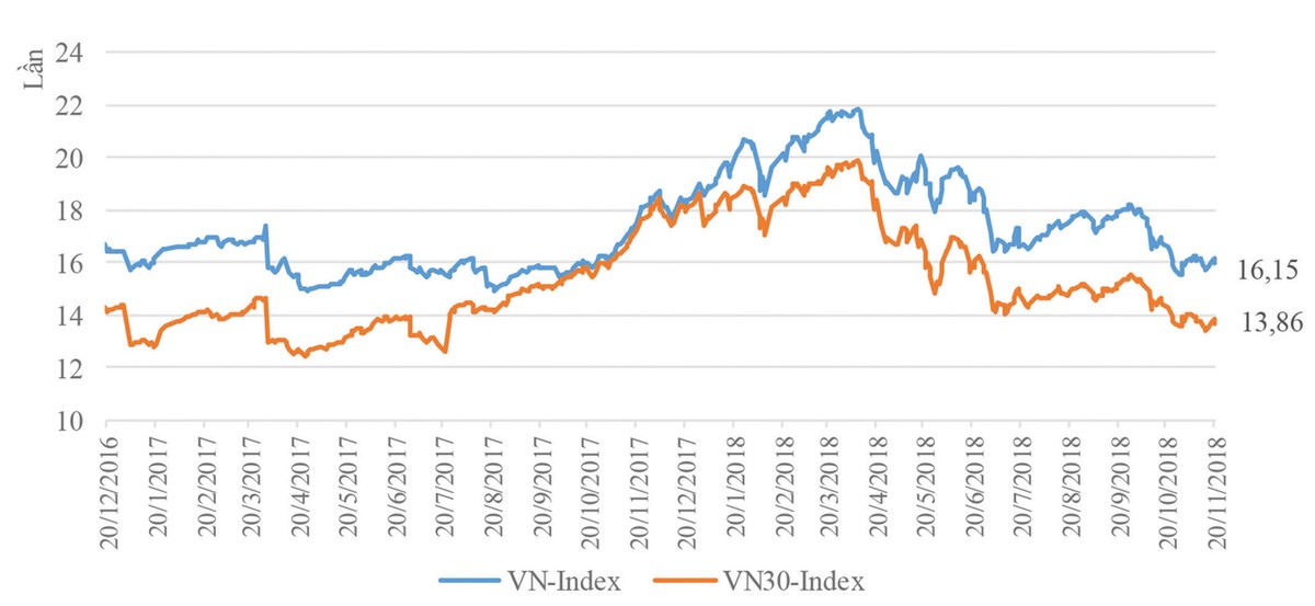 Đáng chú ý, mặt bằng giá cổ phiếu giảm mạnh so với đầu năm trong khi kết quả kinh doanh của các doanh nghiệp, đặc biệt tại nhóm cổ phiếu vốn hóa lớn duy trì tăng trưởng, giúp hệ số giá trên thu nhập (P/E) của VN-Index đang ở mức 16,15 lần (số liệu của Bloomberg phiên 20/11), thấp nhất trong 2 năm trở lại đây, kỳ vọng sẽ sớm kích hoạt dòng tiền đầu tư quay trở lại.