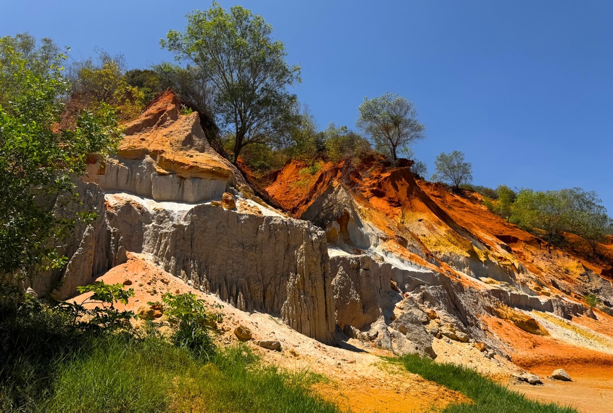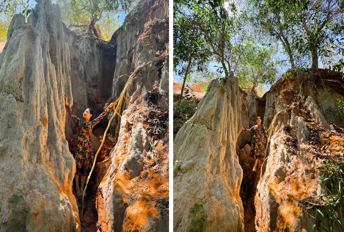 Những nhũ cát được cấu tạo từ đất sét pha cát bị bào mòn theo thời gian hình thành nhiều hình thù kỳ lạ. Cát ở đây kết dính tạo thành những vách núi khô cứng tựa bồng lai tiên cảnh.