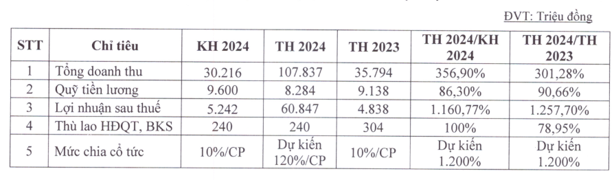 Việc chia cổ tức khủng xuất phát từ kết quả kinh doanh năm 2024 của Vận tải biển Hải Âu đột biến, cao nhất trong 15 năm qua. Cụ thể, năm qua, Công ty ghi nhận tổng doanh thu đạt 107,84 tỷ đồng, gấp 3 lần năm trước và gấp hơn 3,5 lần kế hoạch đề ra (30,22 tỷ đồng); lợi nhuận sau thuế lên tới 60,85 tỷ đồng, gấp 12,6 lần năm 2023 và gấp gần 12 lần kế hoạch (5,24 tỷ đồng).
