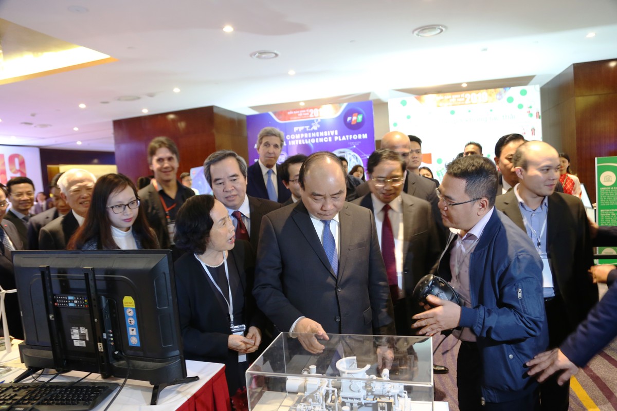Thủ tướng Nguyễn Xuân Phúc tham quan các gian hàng gian trưng bày, giới thiệu nhiều công nghệ, sản phẩm tiên tiến của các Tập đoàn năng lượng, công nghiệp trên thế giới và tại Việt Nam tại Diễn đàn