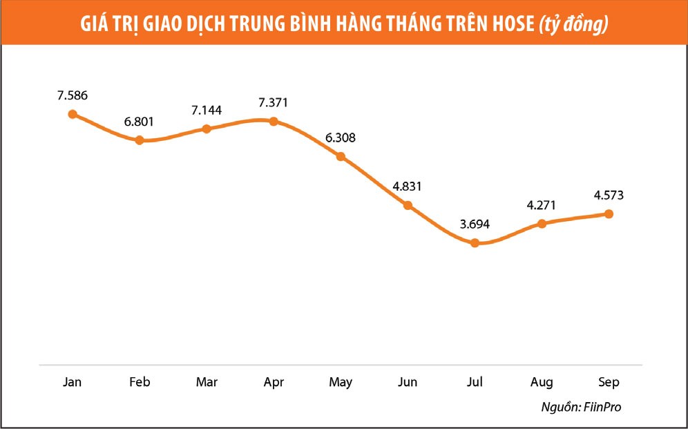 Thanh khoản co hẹp khiến không chỉ công ty chứng khoán bị giảm nguồn thu, mà nhà đầu tư cũng khó “chơi” hơn khi mua cũng không dễ, mà bán cũng không dễ trên sàn.