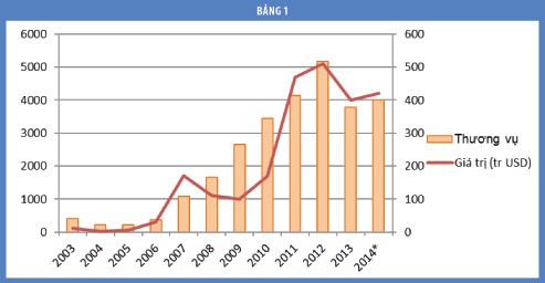 Xét về giá trị thương vụ, các thương vụ lớn đều có liên quan đến yếu tố nước ngoài. Nhà đầu tư nước ngoài chiếm 66% giá trị các giao dịch M&A trong giai đoạn 2008 – 2013 (Bảng 1).