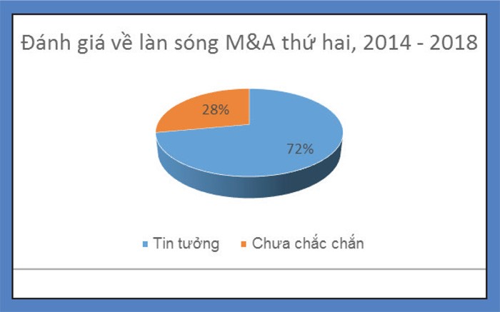 Đánh giá của về làn sóng thứ hai, có 72% nhất trí với nhận định sẽ có làn sóng thứ hai của hoạt động M&A trong giai đoạn tới 2014 – 2018, trong khi đó 28% nhận định chưa chắc chắn cho xu hướng này.
