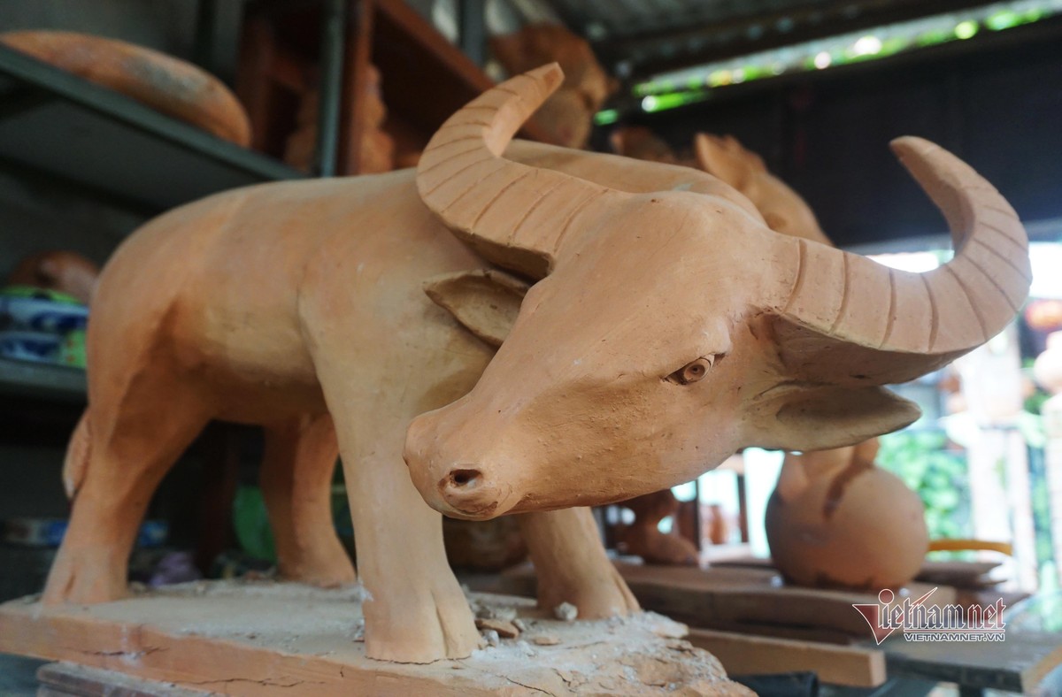 Trâu đất được nặn đủ các kích cỡ tùy vào khách hàng đặt mua.