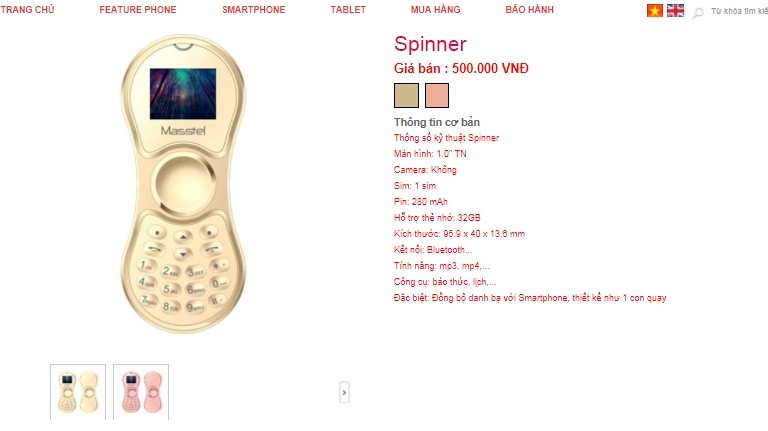 Được biết, Masstel Spinner là thương hiệu điện thoại giá rẻ (500.000 đồng/chiếc) do Masscom Việt Nam phát triển. Masstel Spinner mới được tung ra thị trường và đang trong giai đoạn đầu bán hàng.