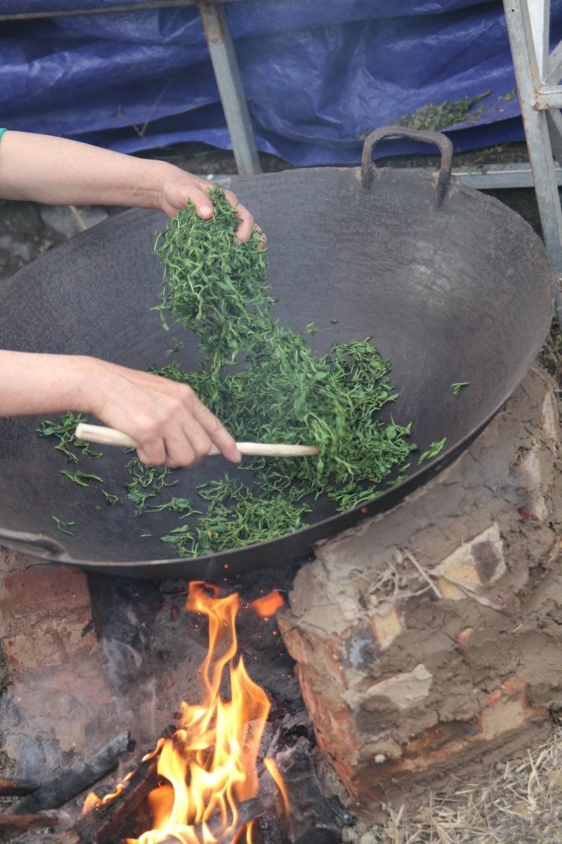 Ở không gian ấy, trong mưa xuân nhè nhẹ, du khách có thể được chứng kiến toàn bộ quá trình chế biến từ búp chè tươi ra sản phẩm trà khô, từ sao héo - vò cho búp chè xoăn lại - lại sao - lại vò - sàng xảy - lấy hương, rồi thưởng thức luôn chén trà mới còn hơi vấn vương mùi khói ấy.