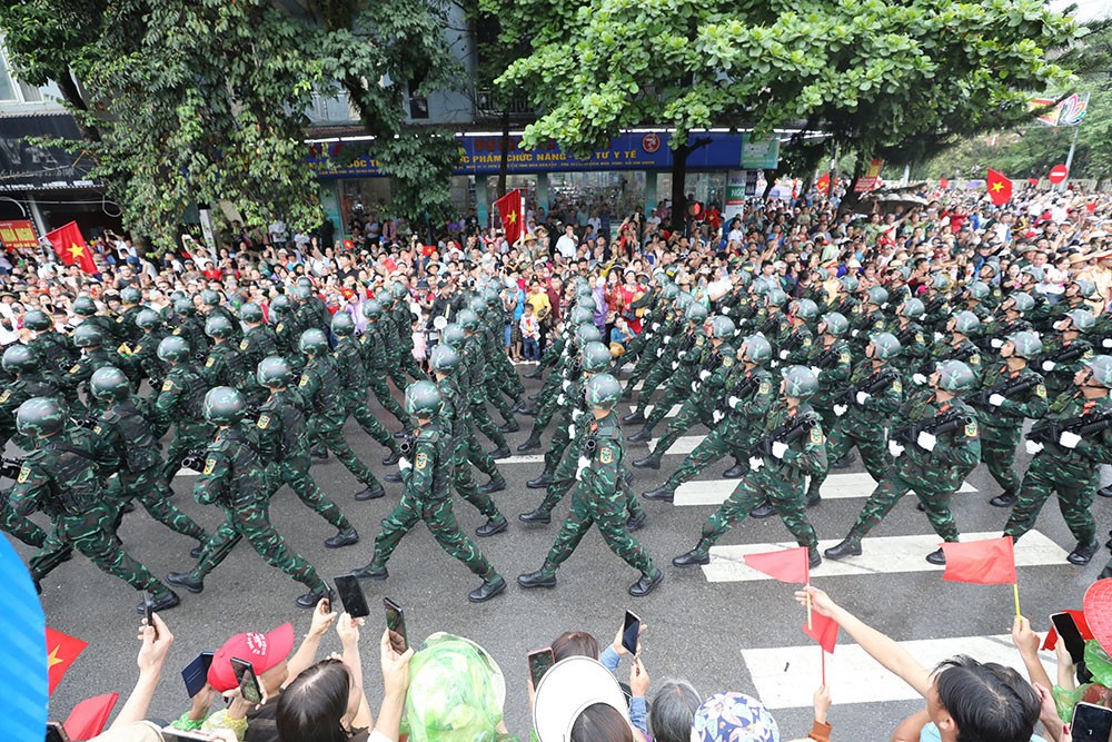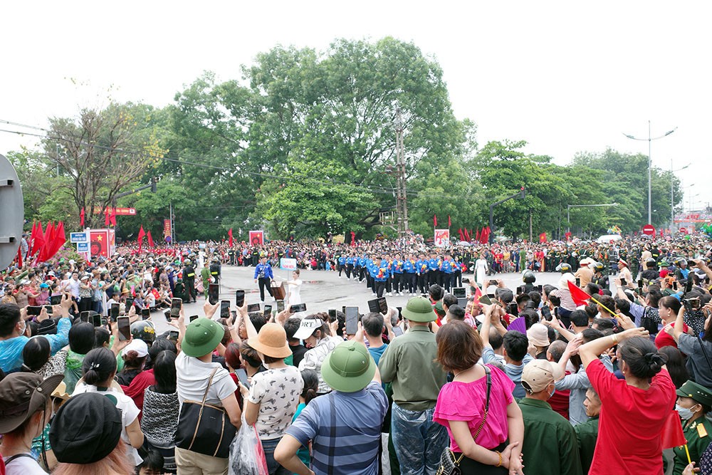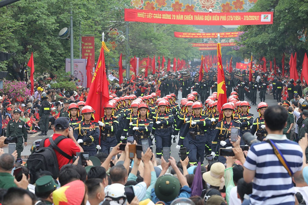 Đội hình diễu binh, diễu hành trong Lễ Kỷ niệm trọng thể hôm nay tái hiện khí thế hào hùng của Chiến thắng Điện Biên Phủ lừng lẫy năm châu, chấn động địa cầu.