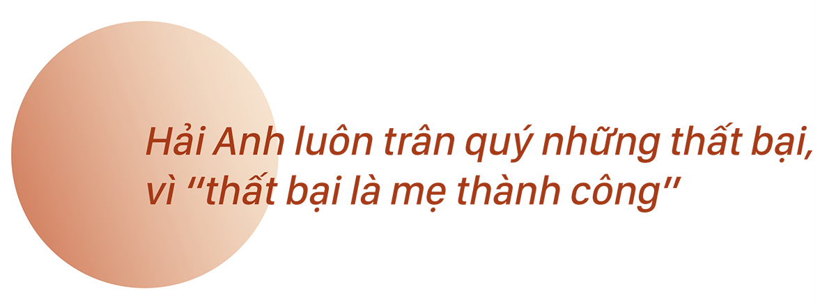 Khi đó, Hải Anh mới chỉ là cô sinh viên năm nhất. Vì chưa có kinh nghiệm, chỉ có trong mình niềm đam mê và sự liều lĩnh, Hải Anh thất bại 3 lần, nhưng cô chia sẻ: “luôn trân quý những thất bại đó, vì với cô “thất bại là mẹ thành công”.