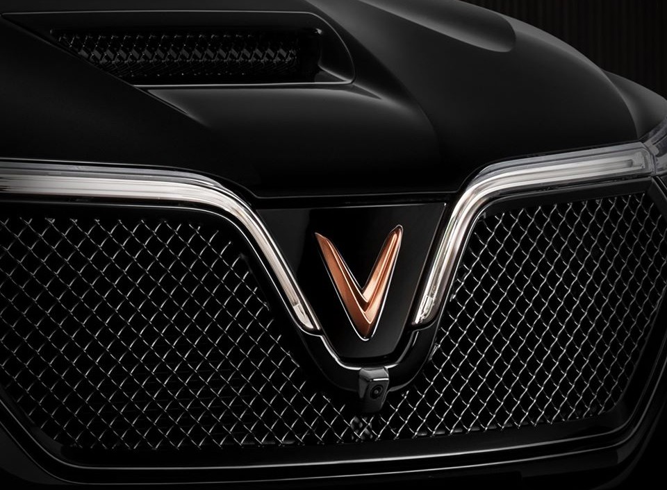 Không giống những chiếc xe VinFast khác, President tỏ ra cao cấp hơn nhờ logo chữ V màu vàng đồng đặt chính giữa lưới tản nhiệt, ngay bên dưới logo có sự xuất hiện của một camera ám chỉ xe sẽ được trang bị camera 360 độ hiện đại.
